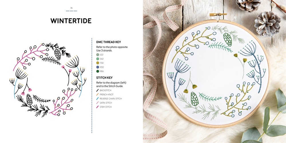 • Beginner-friendly booklet featuring step-by-step stitch guides, full-colour photos and thread keys.