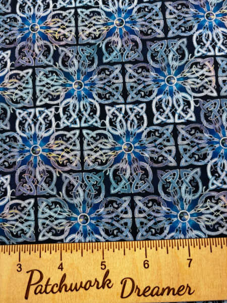Sacred Medallions on Midnight is a dramatic and richly detailed quilting fabric from the Mystic Dragon collection by Michael Miller. Ornate circular motifs repeat across a deep midnight background, each medallion formed from interlacing, almost Celtic-inspired lines that evoke ancient symbols and hidden magic.